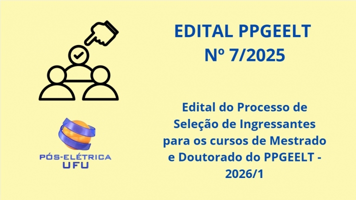 Edital de abertura das Inscrições e do Processo de Seleção 2026-1 para ingresso aos cursos de Mestrado e Doutorado do Programa de Pós-Graduação em Engenharia Elétrica (PPGEELT - UFU)